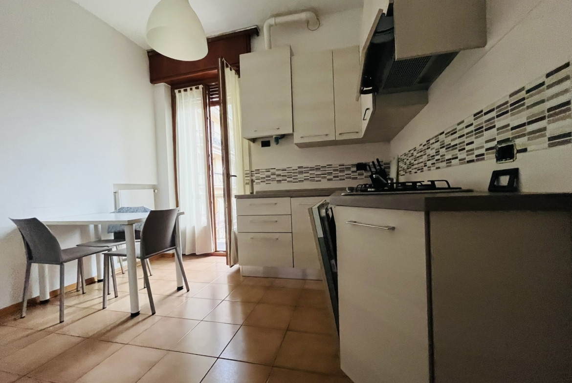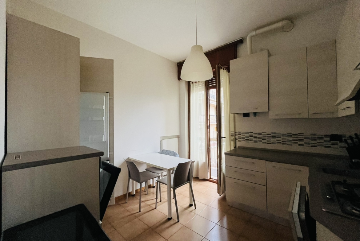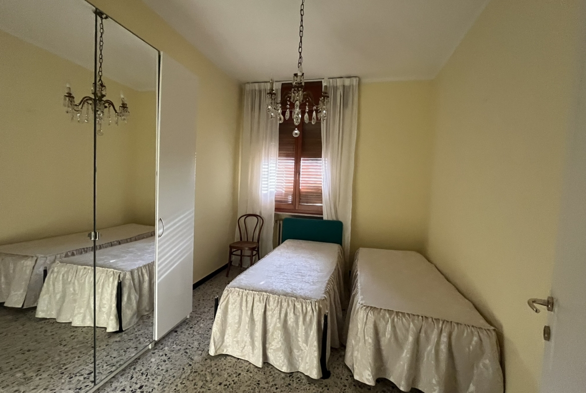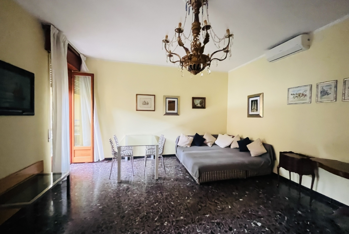 Gli spazi interni si articolano in ingresso, soggiorno di generose dimensioni, cucina abitabile, due camere matrimoniali, una camera singola, due bagni e due balconi. La distribuzione risulta funzionale e lineare, con ambienti luminosi e ben organizzati.